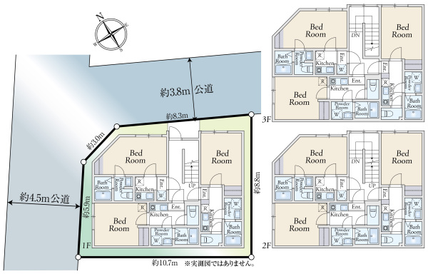 接道状況:角地 方向:北西側,種別:公道,幅員:約4.50m 方向:北東側,幅員:約3.80m